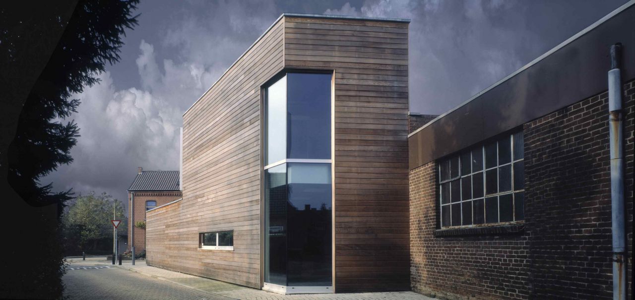 Tussen de fabriekshal en toegangsweg lag nog een klein stukje onbebouwd. De contouren van deze strook hebben de vorm van de aanbouw bepaald.