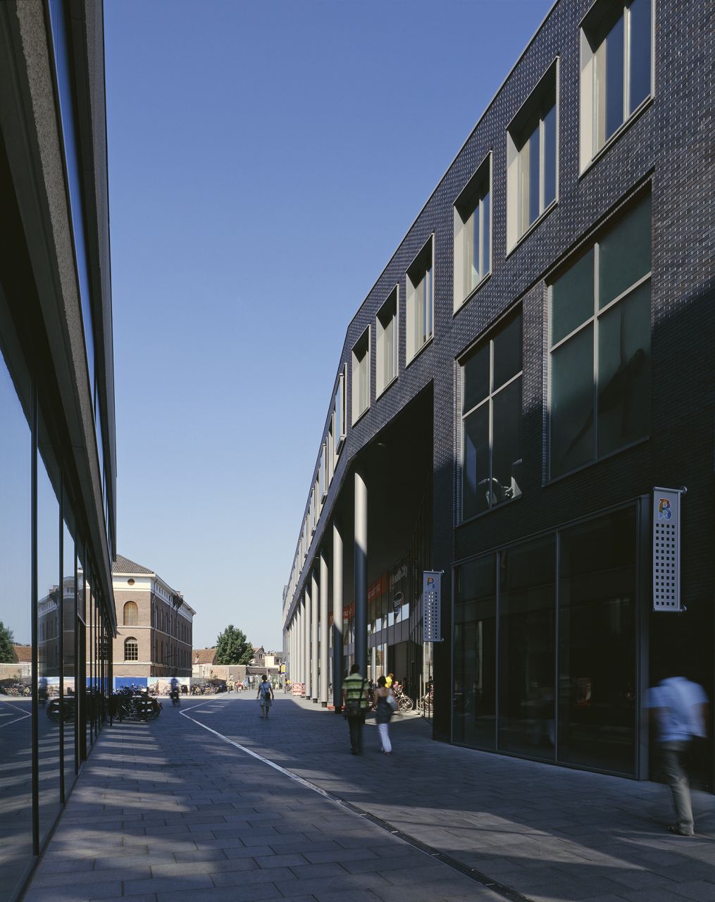 Binnen de historische vesting van Deventer moest een winkelcentrum komen voor grootschalige detailhandel gecombineerd met entertainment. Rondom de oude Boreelkazerne en binnen de gracht van de vestingstad was ruimte hiervoor. In opdracht van DC Vastgoedontwikkeling maakten wij samen met Crepain Architecten uit Antwerpen een masterplan voor een ondergrondse parkeergarage voor 750 auto’s, 15.500 vierkante meter commercie/entertainment en 33 appartementen. Twee grote bouwblokken vormen nu samen met de Boreelkazerne een nieuw stadsensemble met een plein ertussen. Het succes van het project is de verbinding tussen de binnenstad en de buitenstad door de brug over de gracht die aansluit op een oude winkelstraat in het centrum. De gebouwen zijn bewust robuust omdat ze de contouren van de oude vestingwerken volgen.