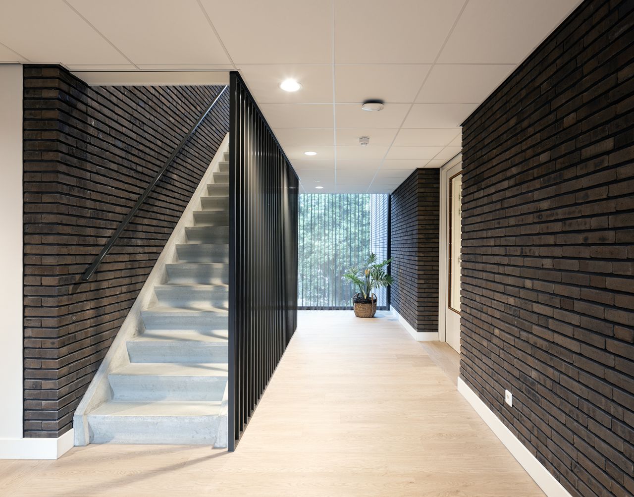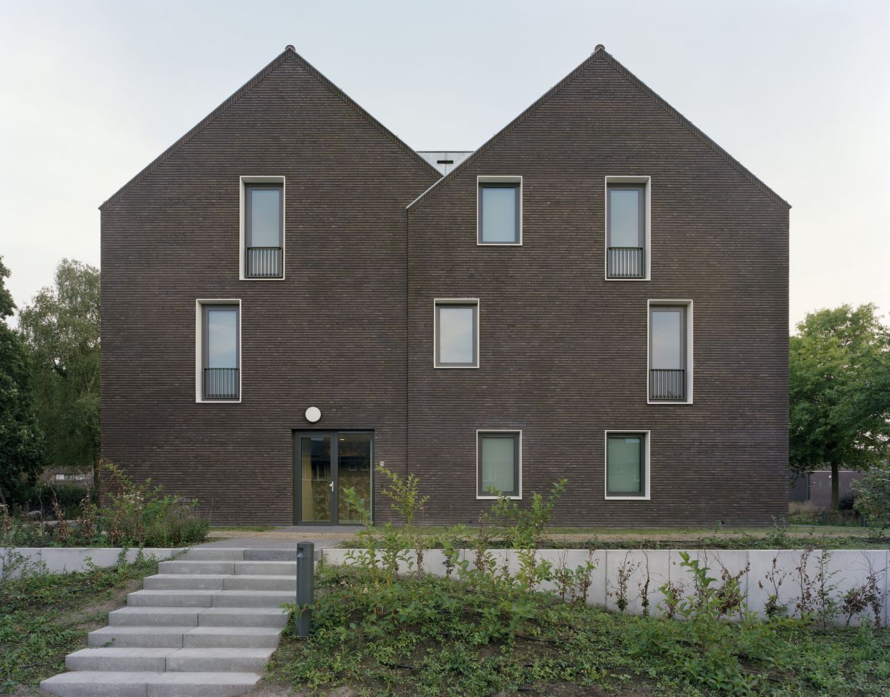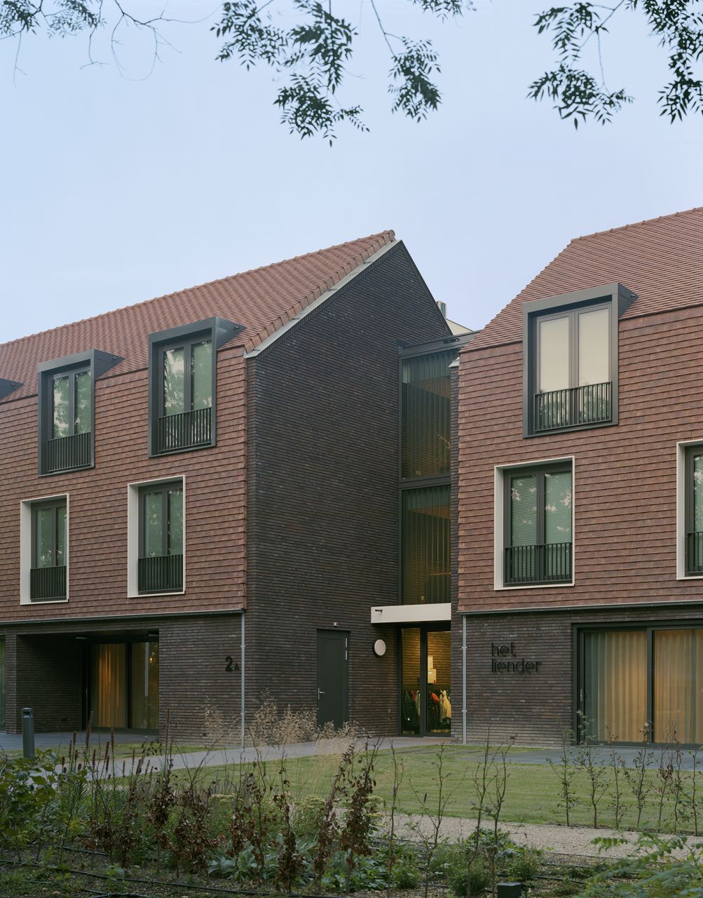 Door het gebouw in tweeën te verdelen ontstaat niet alleen verschaling, maar ook een uitnodigende centrale entree. Beide bouwdelen zijn afgedekt met een kap. Enerzijds een slimme manier om de installaties op het dak te verbergen. Anderzijds past het gebouw daardoor qua maat en schaal beter in de wijk. En juist die opname in de wijk is een mooie knipoog naar de geschiedenis van Het Liender.