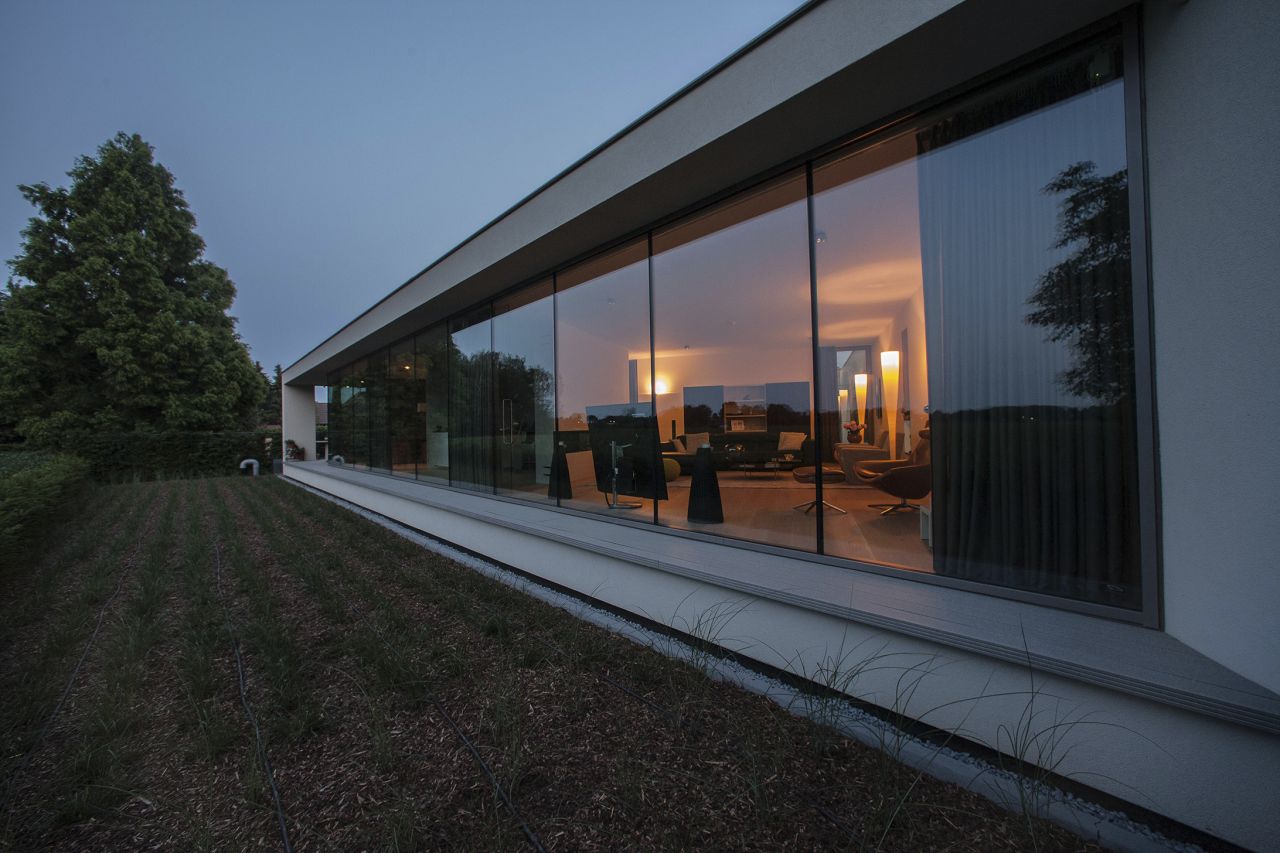 Een huis met alle woonfuncties op één laag. Met veel privacy, veel comfort en een weids uitzicht op de natuur. De transparante woning staat door het vele glas in contact met de patio en het natuurgebied, zodat het goed vertoeven is in alle jaargetijden.