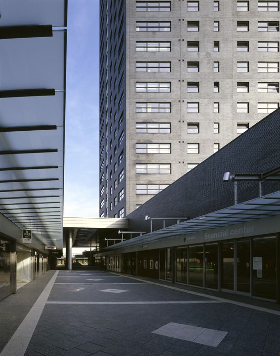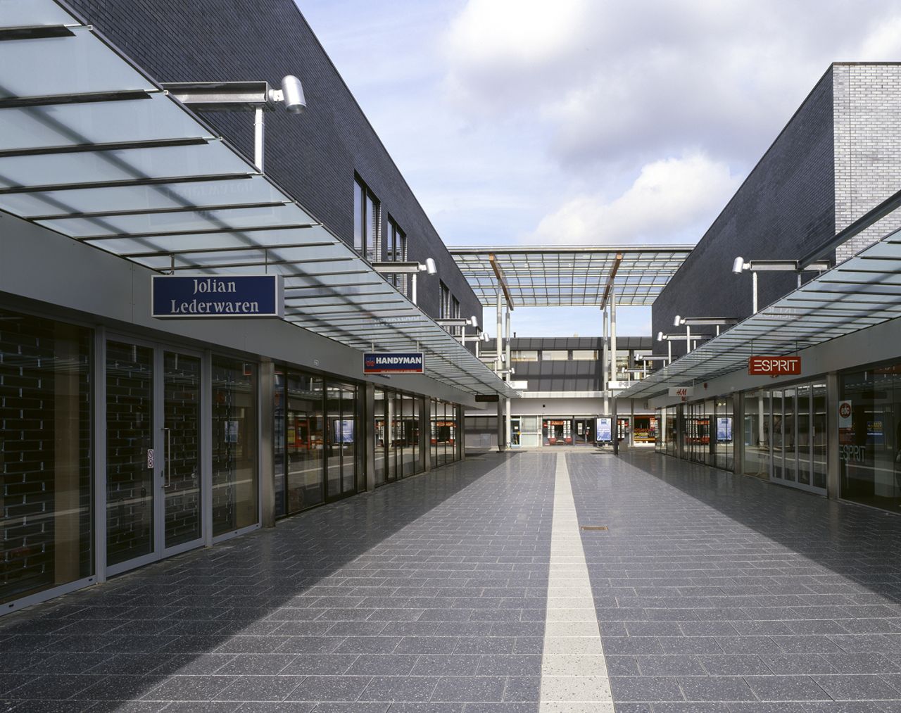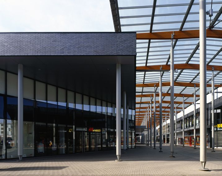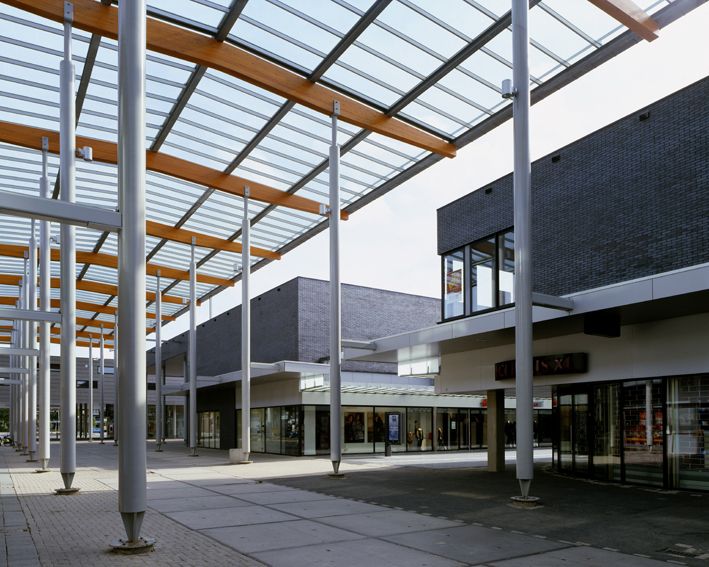 In het oude winkelgebied liep de winkelroute heen en terug. Bij de uitbreiding met nieuwe winkels maakten wij een rondje winkelen met grote, uitnodigende entrees en hoge glazen luifels.