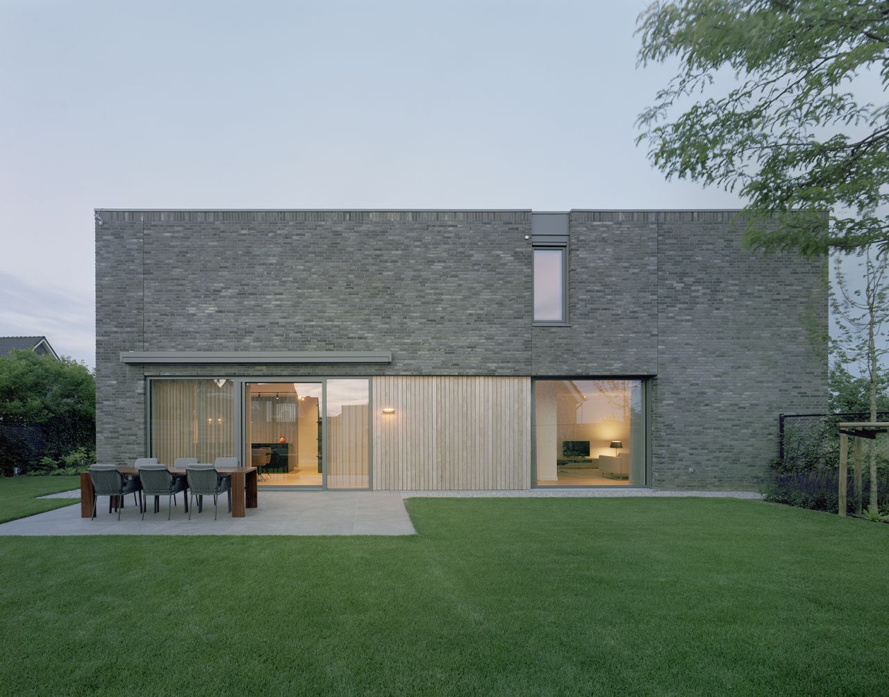 De woning bestaat uit twee volumes; een woonhuis en een losstaande berging. Deze laatste wordt gekenmerkt door geprofileerd hout, met weinig detaillering. Hierdoor ontstaat er meer ruimte voor het woonhuis om te schitteren met een rijke nuancering, gerealiseerd met bakstenen van het Deense Petersen Tegl.